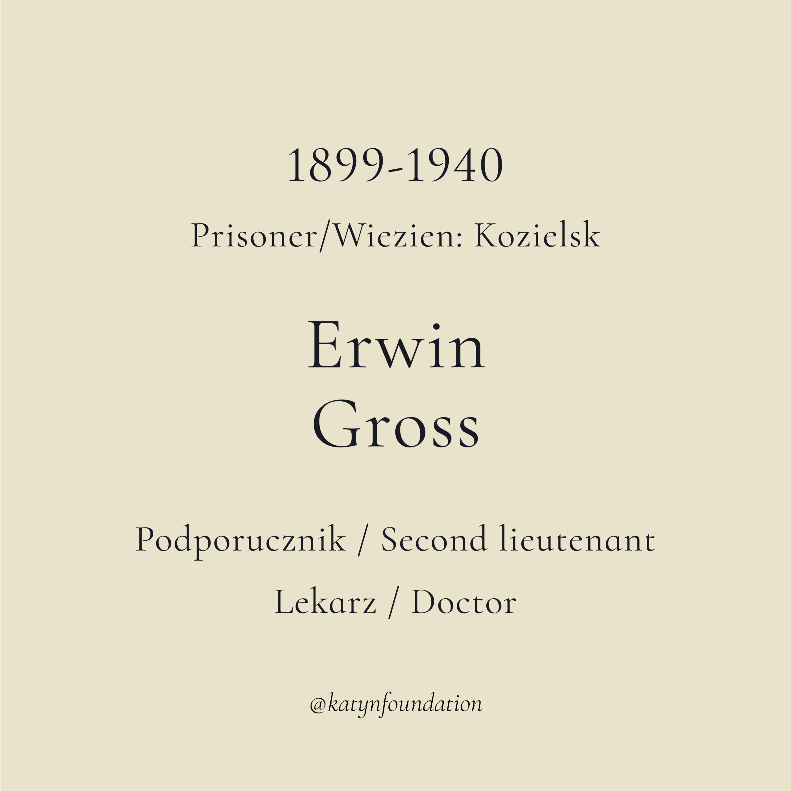 Erwin Gross został zamordowany jako jeniec wojenny przez sowiecką tajną policję w 1940 roku. Niech pamięć o tym dzielnym żydowskim oficerze Wojska Polskiego nigdy nie zostanie zapomniana!