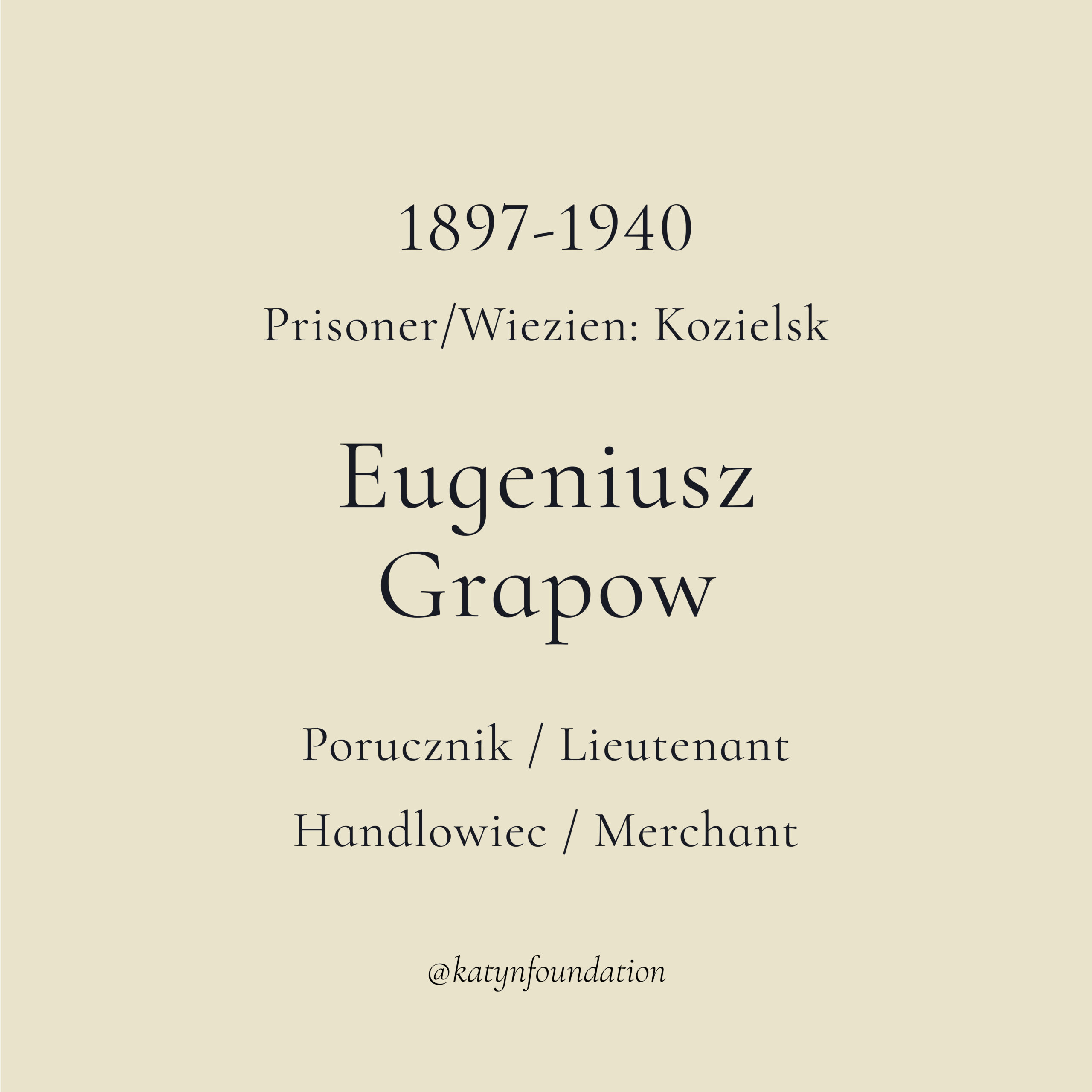 Eugeniusz Grapow został zamordowany jako jeniec wojenny przez sowiecką tajną policję w 1940 roku. Niech pamięć o tym dzielnym żydowskim oficerze Wojska Polskiego nigdy nie zostanie zapomniana!