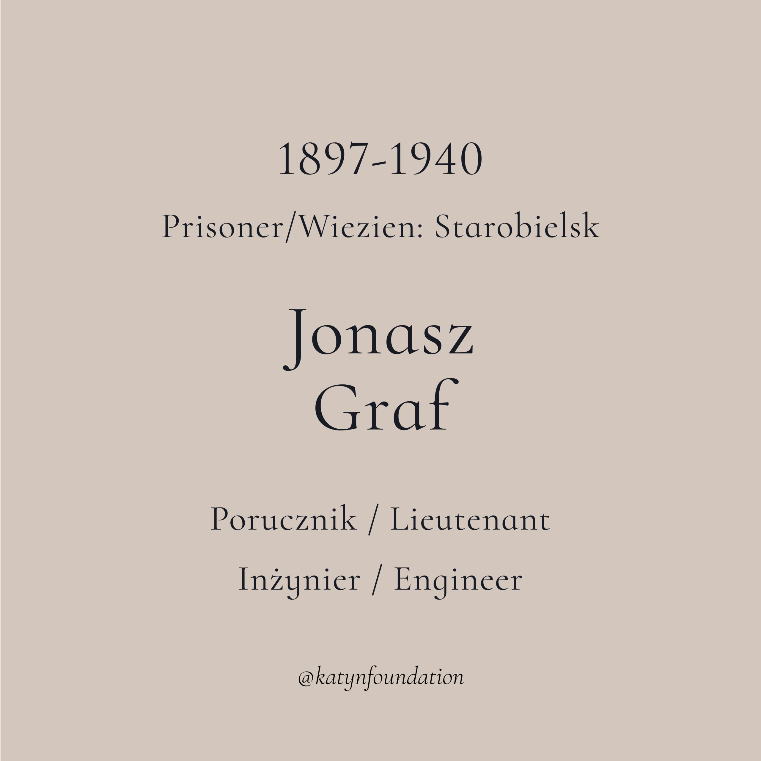 Jonasz Graf został zamordowany jako jeniec wojenny przez sowiecką tajną policję w 1940 roku. Niech pamięć o tym dzielnym żydowskim oficerze Wojska Polskiego nigdy nie zostanie zapomniana!