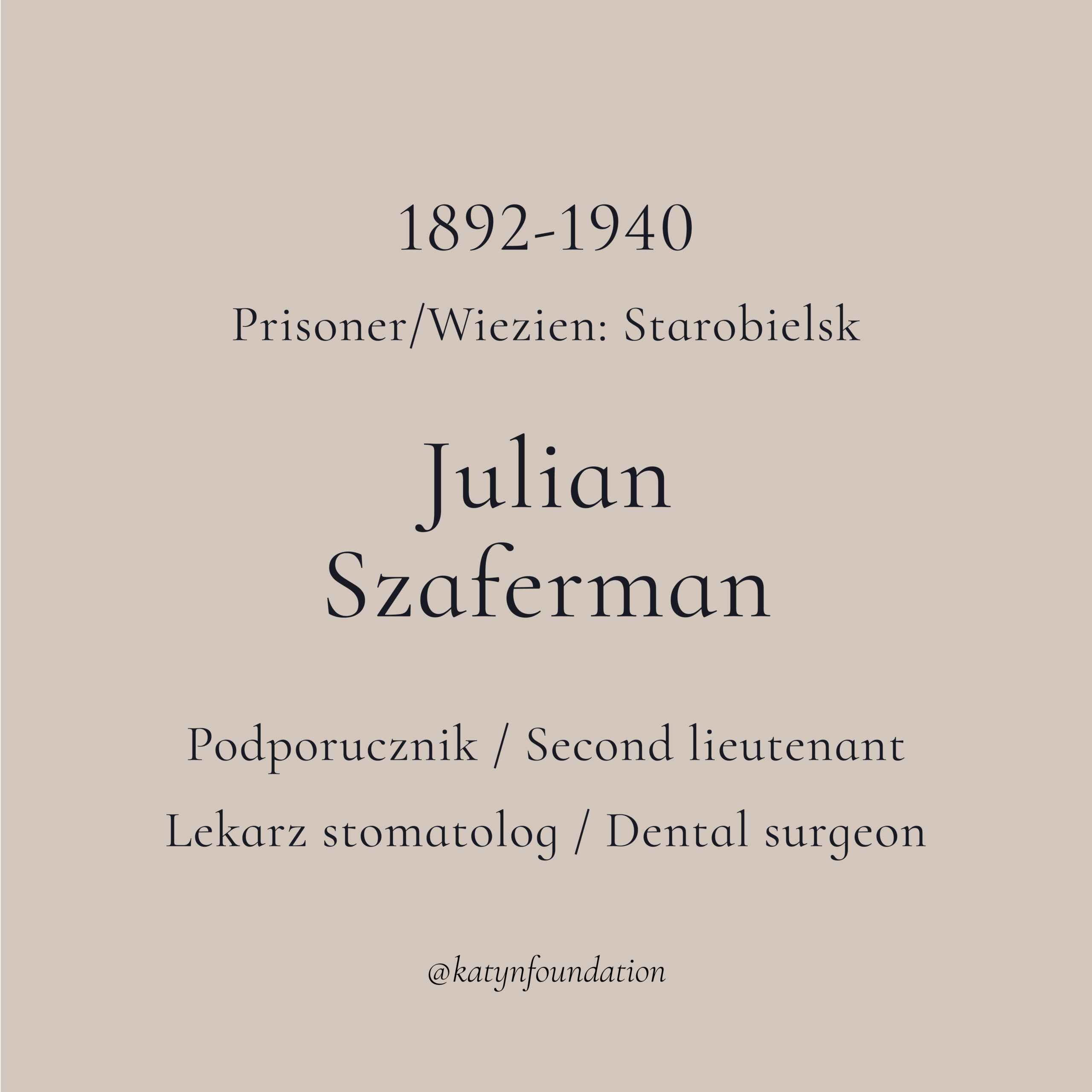 Julian Szaferman został zamordowany jako jeniec wojenny przez sowiecką tajną policję w 1940 roku. Niech pamięć o tym dzielnym żydowskim oficerze Wojska Polskiego nigdy nie zostanie zapomniana!