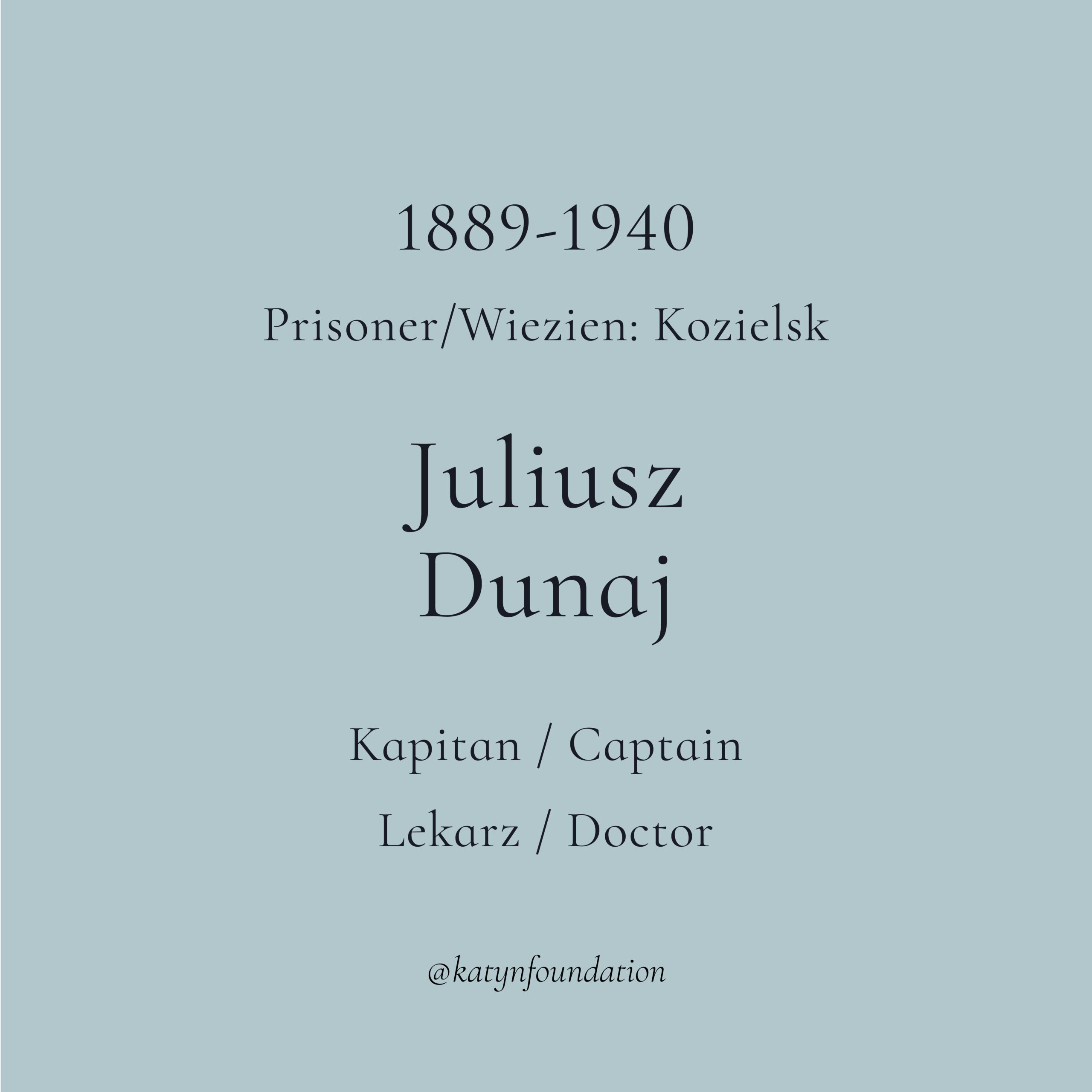 Juliusz Dunaj został zamordowany jako jeniec wojenny przez sowiecką tajną policję w 1940 roku. Niech pamięć o tym dzielnym żydowskim oficerze Wojska Polskiego nigdy nie zostanie zapomniana!
